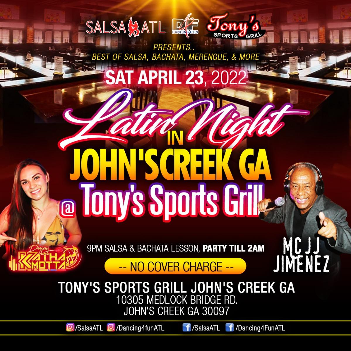 . Tonys Sports Grill is your neighborhood family-friendly restro-bar in Johns Creek. The business is located in 10305 Medlock Bridge Rd Johns Creek GA 30097 USA. 7955 North Point Pkwy.